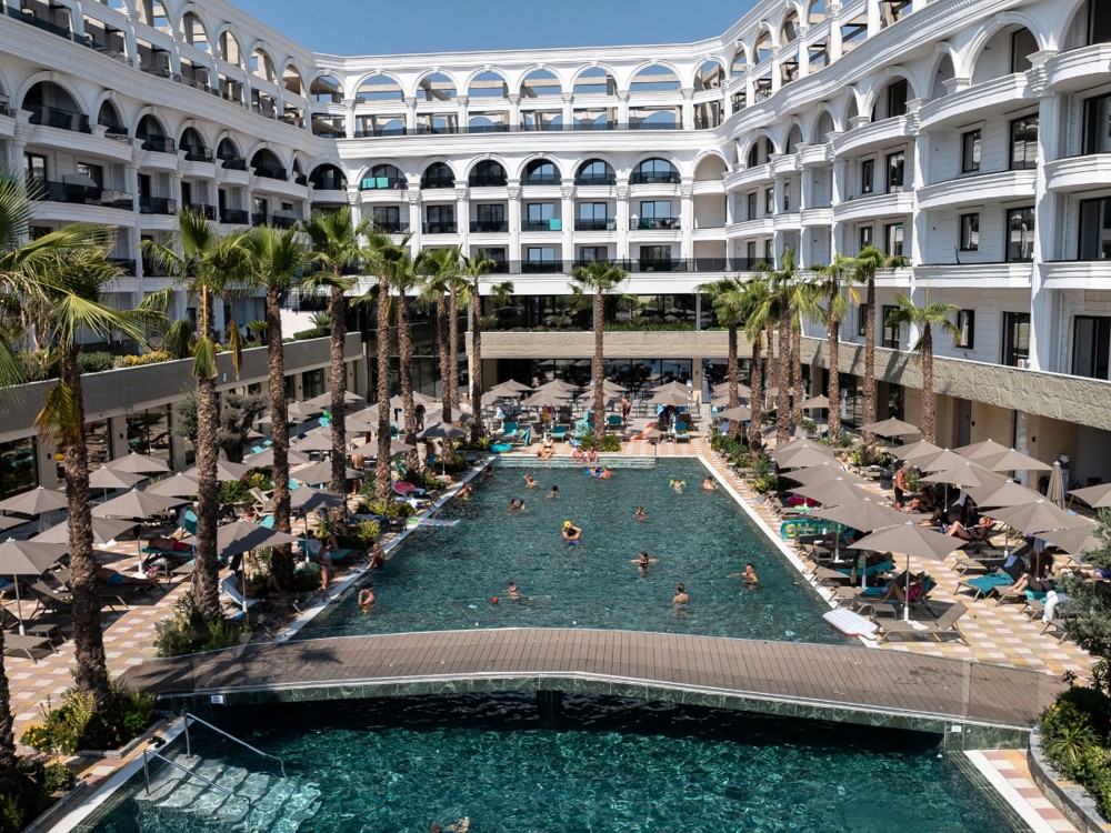 Fafa Aqua Palace is a brand new five star hotel that opened in 2024 and is part of the well known and trusted Fafa chain. Ideally situated in the quiet resort of Golem, just steps from a sandy beach with free sunbed service, it is the perfect setting for a relaxing escape in sunny Albania.