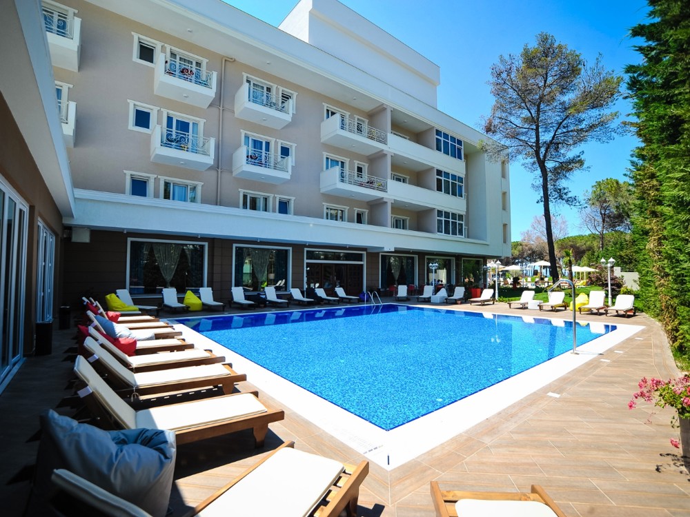 Sandy Beach Resort is set on the beautiful golden beach of Golem, Durrës just 15 minutes from Durrës city centre, 50 minutes from Tirana, and 35 minutes from Tirana International Airport. The resort is made up of three connected buildings: the Main Building, Building A, and Building B (located near the pool and beach), and is designed to blend in with the natural surroundings.