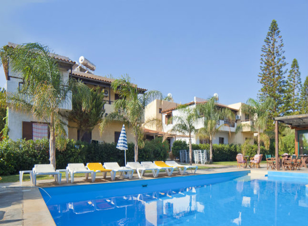 These well maintained Cretan style studios and apartments are renowned for the friendliness of their owners. Situated on the busy main road these apartments are a fifteen minute walk from the small village resort of Anissaras. The pleasant garden area surrounding the pool enables you to enjoy relaxing days, or as an alternative the beach is 600m away. The main resort of Hersonissos is a 3 kilometre drive away.