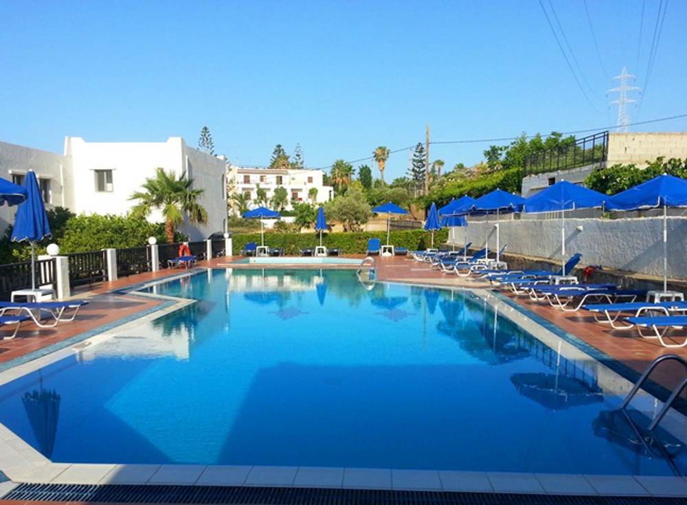 This friendly, newly refurbished, traditional Cretan style hotel is located in a quiet, picturesque part of Hersonissos, within easy reach of the beach, a small water park and the resort centre. The hotel offers a very pleasant atmosphere, especially its lovely pool area, snack bar and gardens. Due to its location away from the bustle of the resort centre, the Dimitra Hotel is the perfect place in which to relax.
