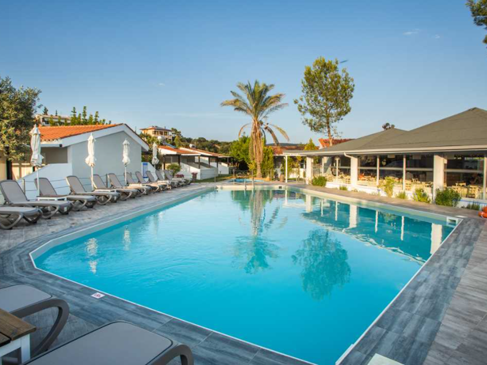 Located alongside a pristine sandy beach, Coral Blue Beach Hotel is a three-star resort in Halkidiki that’s perfect for all the family. The property is built unobtrusively into a striking landscape beside Toronaois Bay, and combined with the eight acres of verdant greenery, makes for an oasis of relaxation as well as incredible views wherever you look. The hotel is a brilliant base for exploring all of what Halkidiki has to offer, and the Gerakini village centre is within walking distance. Here is where you can find a selection of local shops, tavernas and bars, but there is also an on-site mini market for all the convenient essentials. Back at Coral Blue Beach Hotel, guests can find 67 renovated accommodation options ranging from loft sea view rooms to family bungalows, all of which are comfortable, elegant, and fully equipped with modern amenities.