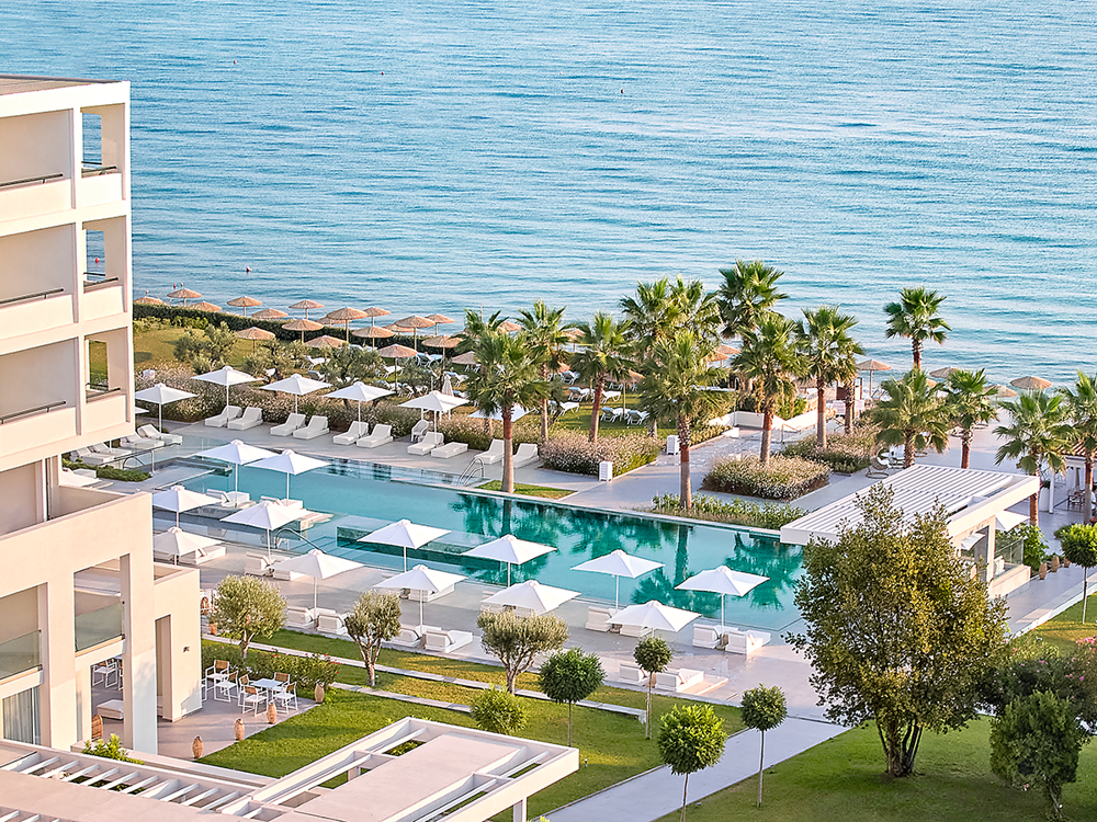 Grecotel Margo Bay & Club Turquoise located on the Kasandra peninsula of Halkidiki offers stunning views towards the neighbouring peninsula of Sithonia and surrounded by Olive & Palm trees with gardens that merge with the sea, is a great choice for a relaxing holiday.