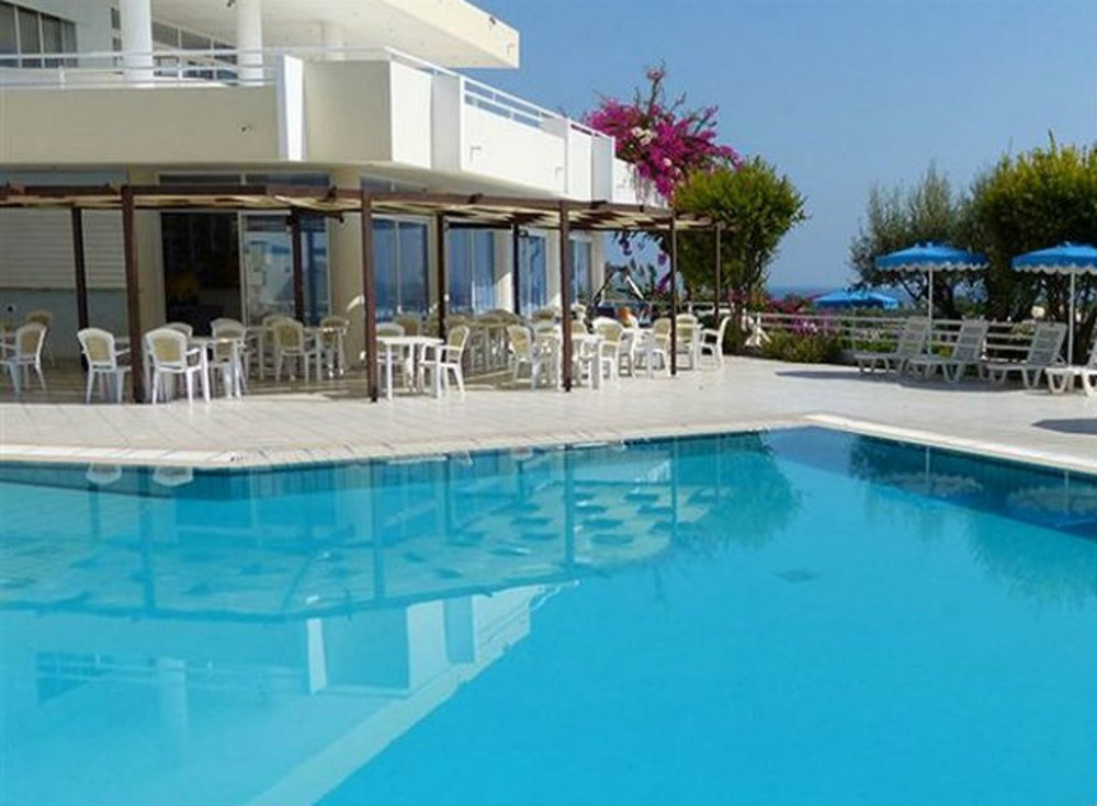 The Iris Hotel complex is a modern, colourful family hotel set on a hillside only 300 meters from a variety of restaurants, bars, shops & super markets. The famous Afandou beach is located just 1 km away.