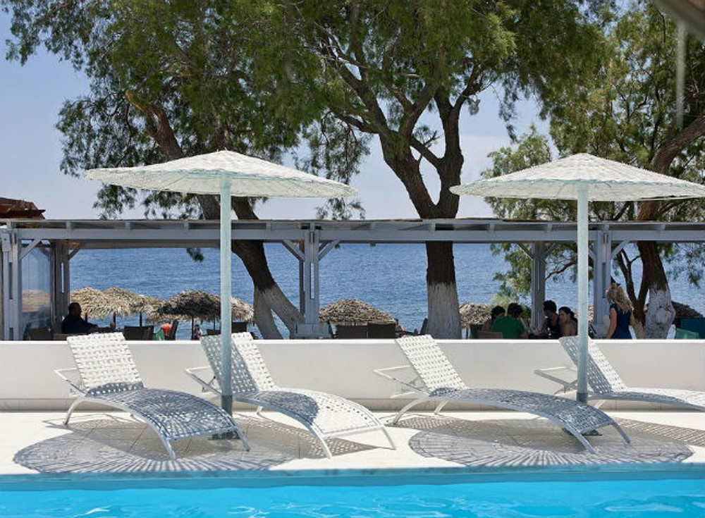 If you are looking for a cozy, charming beach hotel in Kamari, Santorini, the Alesahne Beach Hotel is the ideal choice. Set on the beautiful Kamari Beach, this hotel offers a relaxing environment and chic, elegantly designed rooms. Amongst the most visited spots on Santorini Island, the Kamari black sand beach is considered the place to be. The comfortable rooms each have a furnished balcony with enchanting views to the sparkling sea or the beautiful surroundings. This pleasant 3 star hotel offers a warm atmosphere and a high standard of service.