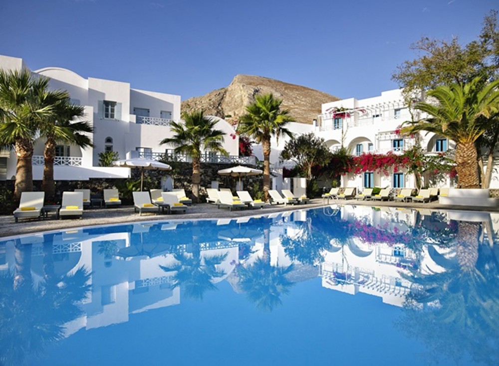 All rooms are spacious with exquisite paintings and ornate balconies, making this hotel a luxurious and comfortable choice. This hotel is also a member of the Small Luxury Hotels of the World. The hotel is located 10 kms from Fira, the capital of the island and 4 kms from Santorini international airport.