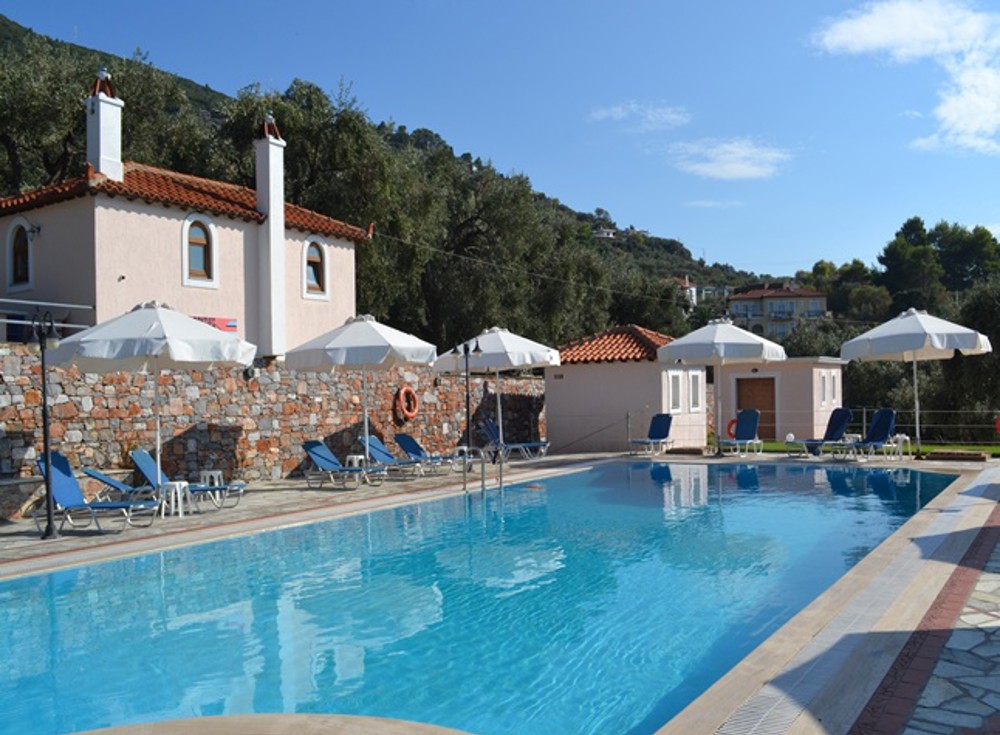 The complex has 1000m2 of olive groves surrounding it, and there are several gardens where clients can relax between the sun and shade. There are also several communal outdoor sitting areas and terraces where panoramic views across the bay to Skopelos Town can be seen. It consists of 3 buildings with apartments and studios, each fully equipped for a self catering holiday.