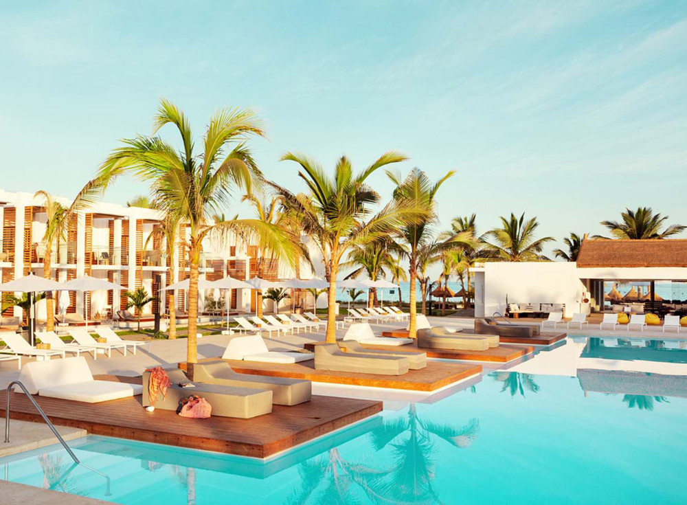 This modern hotel, which features impressive African art, opened at the end of 2018 and has a great lagoon-style pool on a large terrace packed with comfortable sunbeds and sunshades. Some of the 140 double rooms also have direct access to another pool.